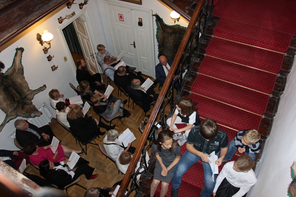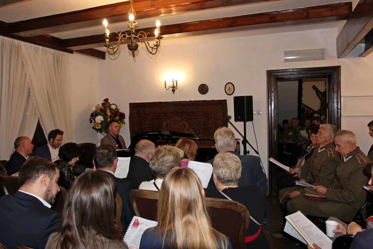 Wieczorem, gdy dwór Lutosławskich tłumnie wypełnili goście Wieczoru Pieśni Patriotycznej organizowanego przez Katarzynę i Krzysztofa Lipskich wraz z synami Pawłem, Markiem i Łukaszem wspominano innych bohaterów i ich różne drogi do wolnej Polski. Katarzyna Lipska mówiła o łomżyńskich uczniach, którzy w XIX wieku rozpoczęli walkę o wolność, znanych ze szkolnych podręczników: Szymonie Konarskim, Adamie i Ludwiku Mierosławskich, Rafale Krajewskim. Przypomniała również amerykańskich lotników walczących o polskie granice w latach 1919 - 1920 wśród których był zdobywca Oskara kapitan Meyer Cooper potomek bohatera walki o niepodległość Stanów Zjednoczonych walczącego u boku Kazimierza Pułaskiego. Przywoływała także tych, którzy do Ojczyzny po II wojnie nie wrócili - generała Stanisława Maczka, generała Stanisława Sosabowskiego czy bohatera bitwy o Anglię Stefana Kleczkowskiego (również absolwenta łomżyńskiej szkoły). Poznawanie ich losów towarzyszyło wspólnym śpiewom naszych najwspanialszych pieśni patriotycznych.