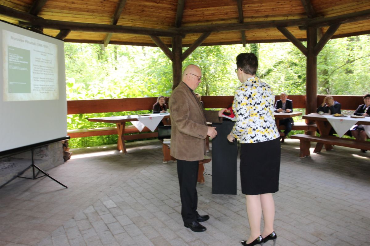 Wernisaż wystawy plenerowej „Z zesłania na wyżyny nauki. Polscy badacze Syberii” z Muzeum Pamięci Sybiru w Białymstoku, rozpoczęła Anna Archacka – Dyrektor Muzeum Przyrody – Dworu Lutosławskich w Drozdowie i gospodarz miejsca prezentacji wystawy. Przedstawiając wystawę i sylwetki zesłańców – naukowców, przypomniała, że Muzeum w roku 2017 otrzymało Medal im. Wiktora Godlewskiego, przyrodnika, jednego z bohaterów wystawy. Oficjalnego otwarcia dokonała Maria Dziekońska, Wicestarosta Łomżyński, podkreślając wieloletnie współistnienie w placówce działalności przyrodniczej i historycznej.