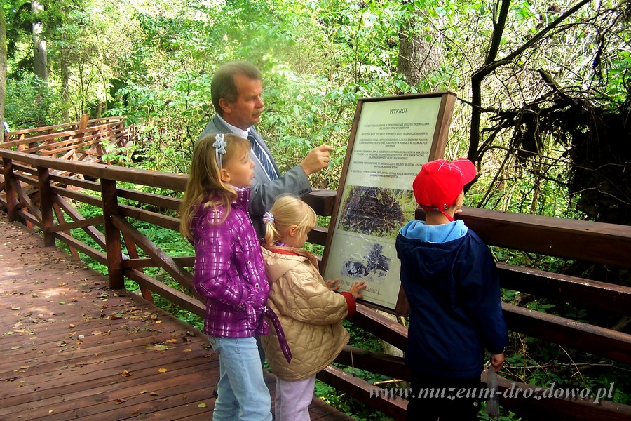 Na terenie Muzeum Przyrody w Drozdowie istnieje park podworski. Jest on w jednej części zagospodarowany, w drugiej natomiast funkcjonuje jako część dzika bez ingerencji człowieka. Jest to niezwykle interesujący fragment nadrzecznego łęgu. Przez ostatnie 20 lat obumierające drzewa, czy ich konary po wiatrołomach były tam celowo pozostawiane. Dzięki temu zalegające teraz i butwiejące drewno stwarza siedliska dla licznych gatunków owadów, grzybów, mchów i porostów. Podobny obraz lasu z różnogatunkowym runem, podszytem, różnowiekowym drzewostanem, z wykrotami i powalonymi pniami jest współcześnie wyjątkowy.