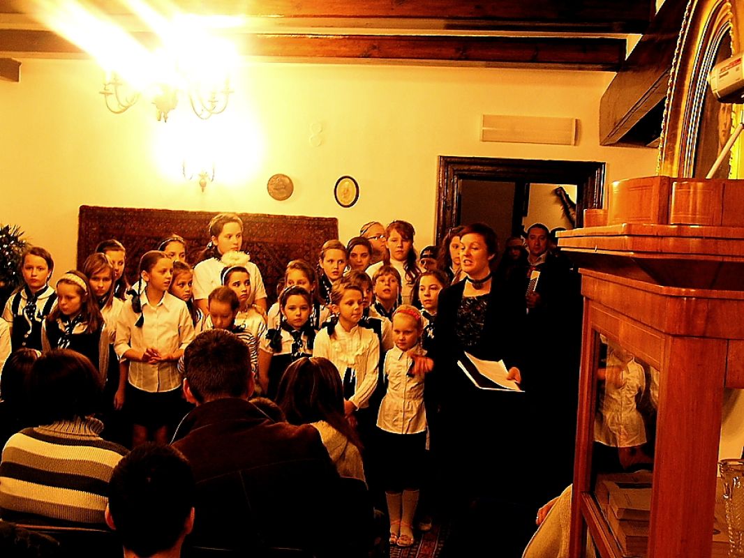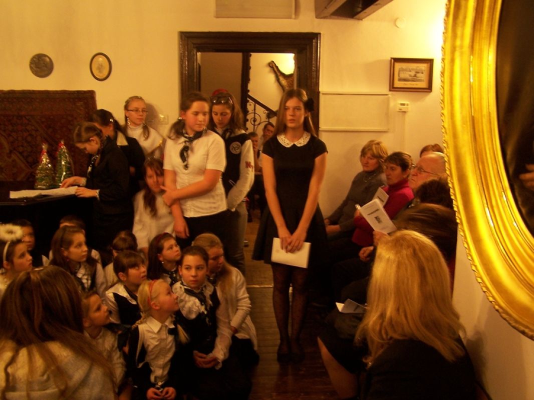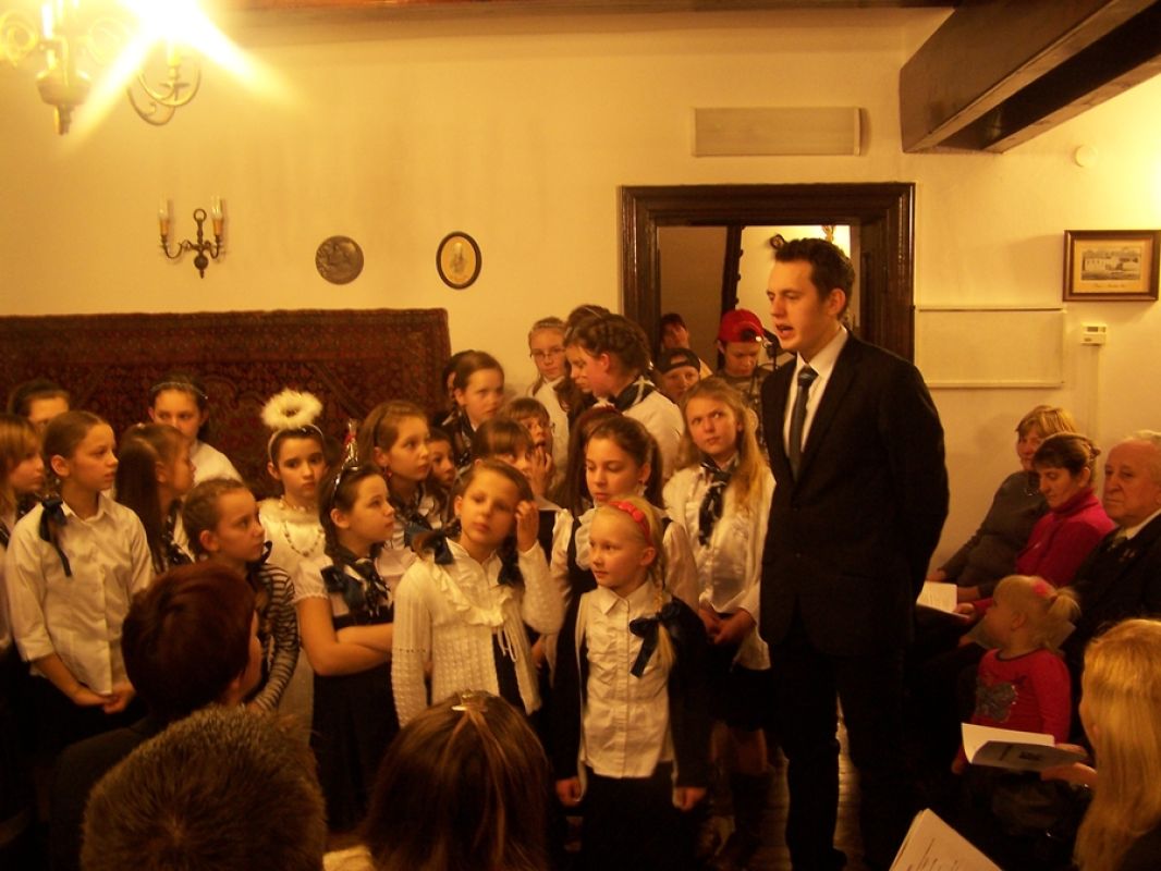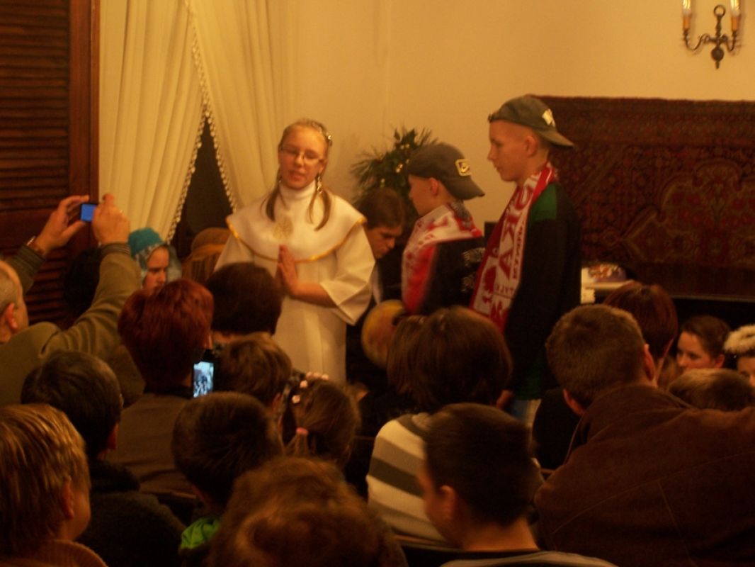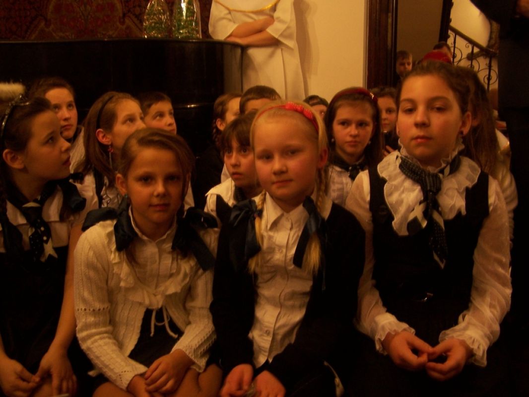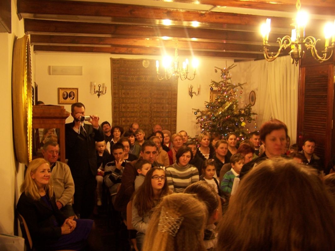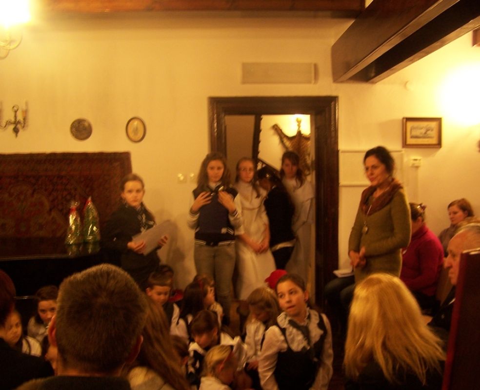 Rozświetlony dwór Lutosławskich, zimowa aura, śnieg, styczeń, okres bożonarodzeniowy; w salonie dworskim Muzeum Przyrody w Drozdowie przy świątecznej choince wspólne śpiewy kolęd, występy artystyczne, jasełka, chór „Szkolne słowiki” ze Szkoły Podstawowej w Jeziorku pod opieką artystyczną Beaty Sejnowskiej-Runo. Są to obrazy związane z atmosferą wieczoru kolęd „Aniołowie się radują” jaki odbył się w miniony piątek 18 stycznia.