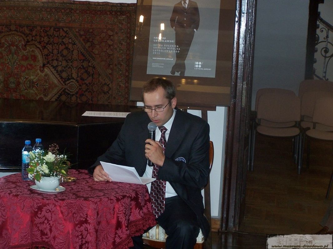 102 0714KonferencjaMuzeum DrozdowoW obchodzonym przez cały muzyczny świat Roku Witolda Lutosławskiego, Muzeum Przyrody w Drozdowie zorganizowało międzynarodową konferencję naukową, której celem było ukazanie życia i twórczości tego wielkiego kompozytora na tle losów jego rodziny oraz wkładu jaki poszczególni członkowie rodu Lutosławskich wnieśli w życie kulturalne, społeczne i polityczne Polski. Wierząc, że losy jednostki, cechy jej charakteru i rozwijane talenty są ściśle powiązane ze wspólnotą rodzinną z jakiej się wywodzi, grono badaczy zebranych w dniu 30 sierpnia 2013 roku w Muzeum Przyrody w Drozdowie (Dworze Lutosławskich) poddało analizie historię rodziny Lutosławskich na tle dziejów regionu łomżyńskiego oraz Polski w wieku XIX i XX, a także biografię Witolda Lutosławskiego, ze szczególnym uwzględnieniem jego działalności kompozytorskiej oraz obywatelskiej. Wygłoszone w tym dniu referaty stworzyły „Portret rodzinny Witolda Lutosławskiego” - taki tytuł miała zorganizowana konferencja.