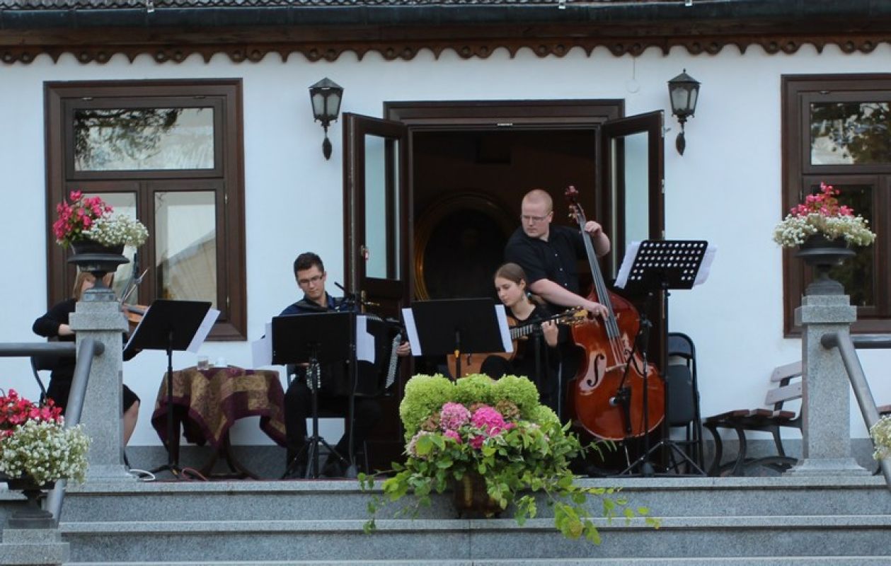 „Spotkanie Pokoleń w Kręgu Kultury Ziemiańskiej” zakończył plenerowy koncert w wykonaniu Zespołu Tangrasso Quintet. Muzycy: Bogumiła Dąbrowska - skrzypce, Piotr Komorowski - akordeon, Małgorzata Jarosz - gitara, Mateusz Bakun – kontrabas oraz Krzysztof Nowakowski – fortepian, zaprezentowali program składający się z utworów A. Piazzolli oraz C. Gardela.