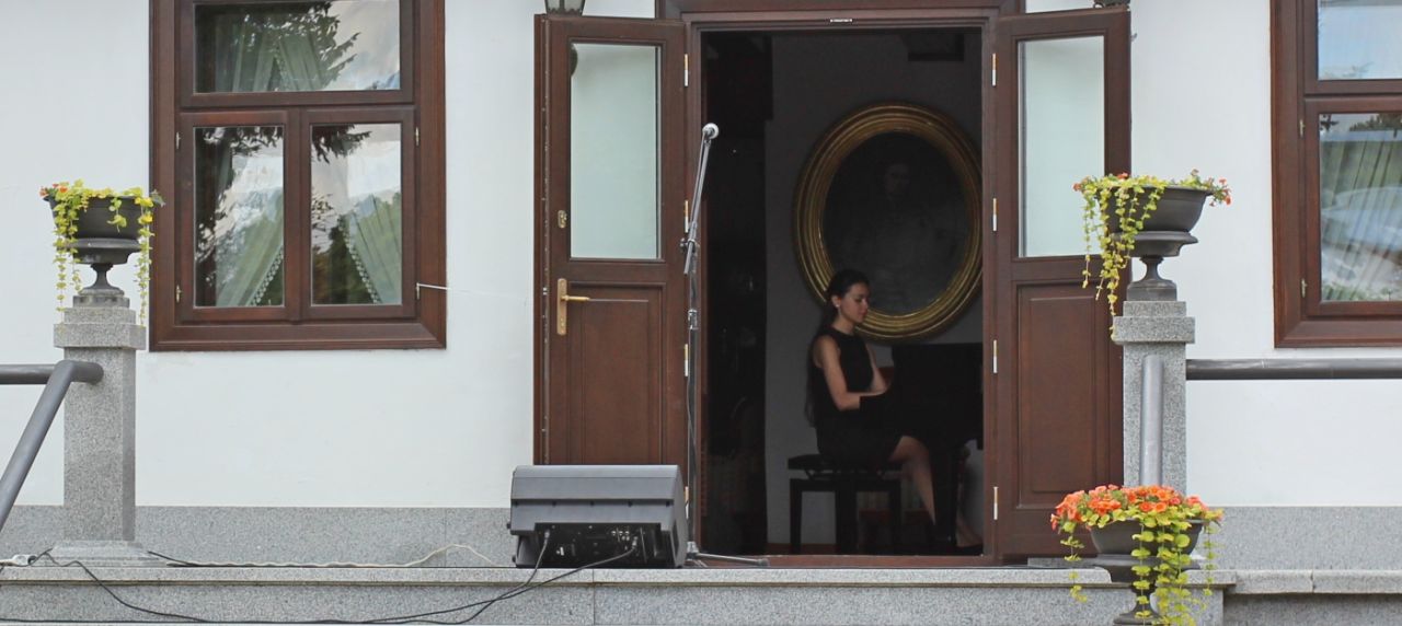 Zebrana w parku muzealnym publiczność wysłuchała programu obejmującego utwory instrumentalne oraz instrumentalno-wokalne autorstwa m. in. F. Schuberta, F. Liszta, M. Ravela, W. A. Mozarta, R. Schumanna czy R. Wagnera.