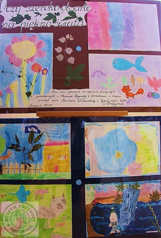 W Muzeum Przyrody w Drozdowie od 3 do 15 sierpnia 2015 w godzinach 10.00 – 12.30 odbyły się zajęcia artystyczne dla dwadzieściorga dwojga (22) dzieci. Chętni którzy chcieli dać swoje prace na wystawę dodatkowo przychodzili jeszcze przez następny tydzień ale już w mniejszych grupkach.
