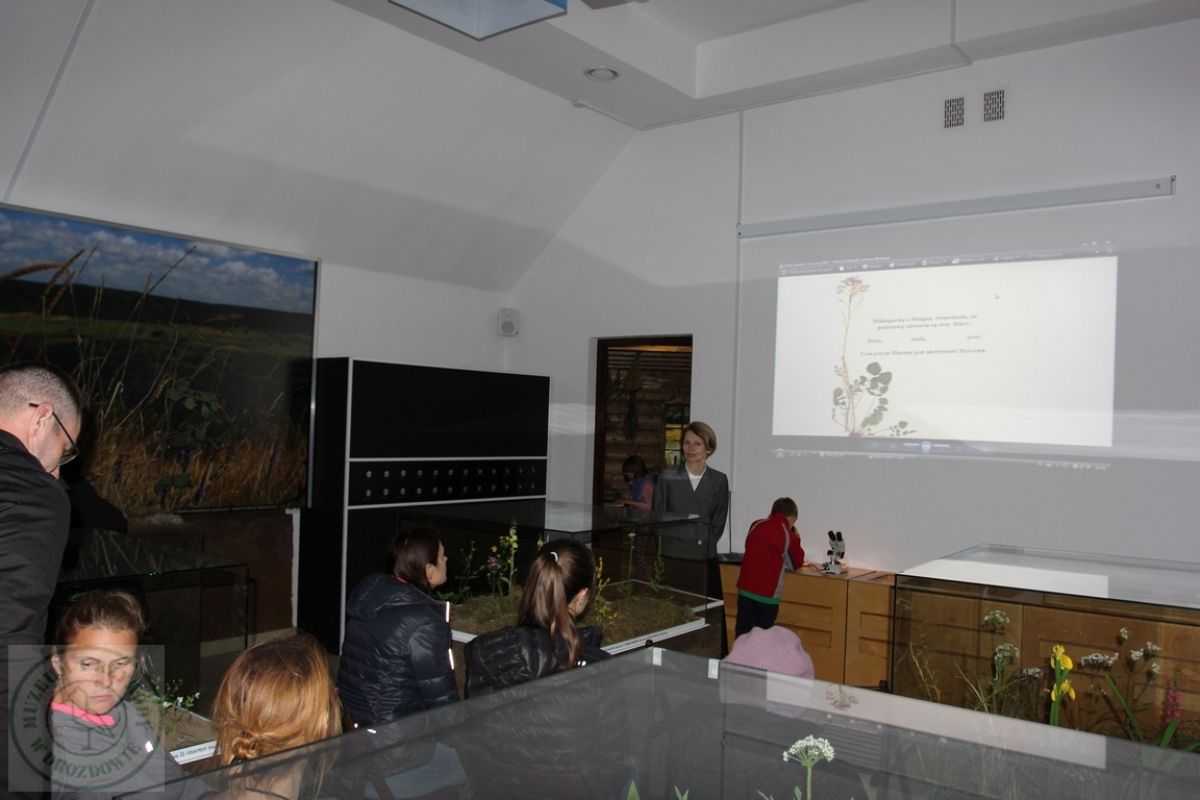 Kustosz Teresa Grużewska wygłosiła prelekcję pt. „Rośliny o właściwościach antybiotycznych” w której omówiła prozdrowotne działanie wybranych roślin, szczególną uwagę poświęcając olszy czarnej. Chętni mogli także skosztować naparu z olszy.