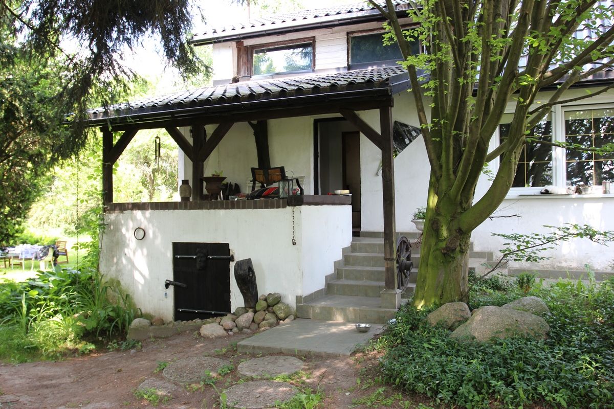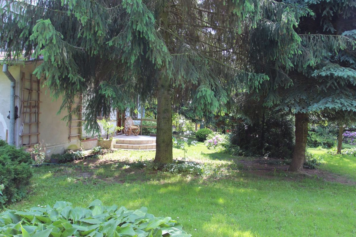 Jest to duża posesja, z domem obudowanym po II wojnie światowej. Mieści się tu także budynek będący pracownią syna pani Krystyny – Jacka Zacharzewskiego. Pan Jacek jest artystą- rzeźbiarzem. Zajmuje się tworzeniem unikatowej biżuterii oraz rzeźb z czarnego dębu. To niezwykle rzadka sztuka, wykonywana z surowca nietypowego, trudnego do pozyskania - dąb taki wydobywany był bowiem z dna rzek, także z okolicznej Narwi. Jego twórczość oscyluje wokół tematów metafizycznych, uczuć i relacji międzyludzkich. W pracowni widzimy fragmentu dębu, warsztat artysty, rozpoczęte i skończone prace. Za oknem widok na piękny ogród, sprzyjający twórczej pracy.