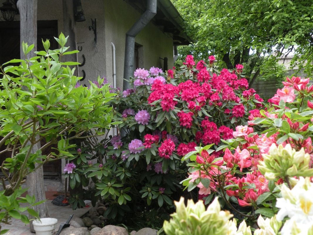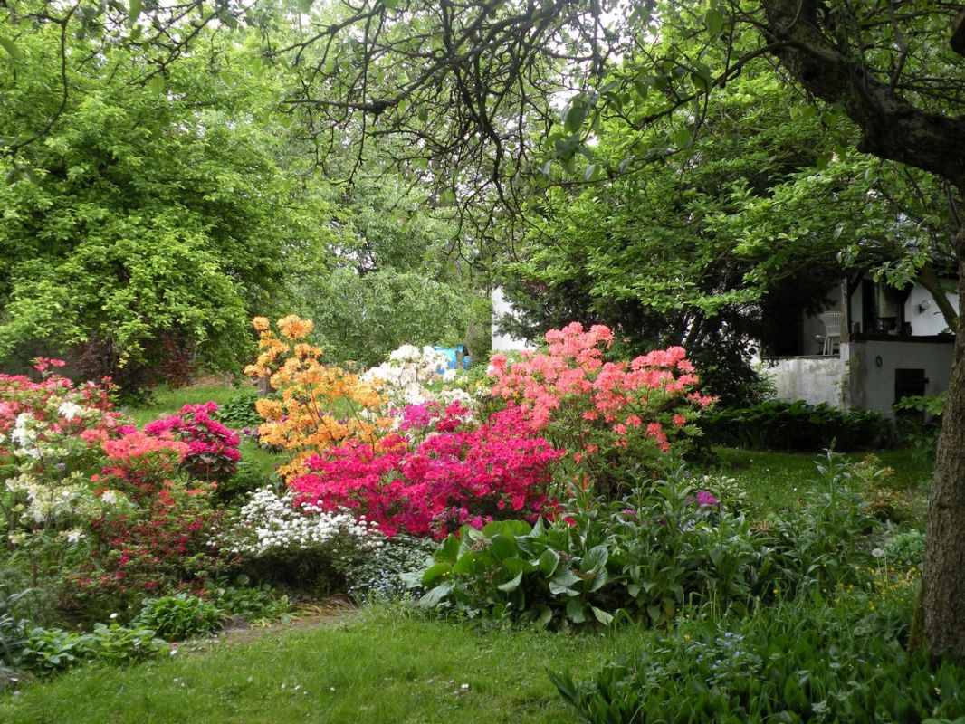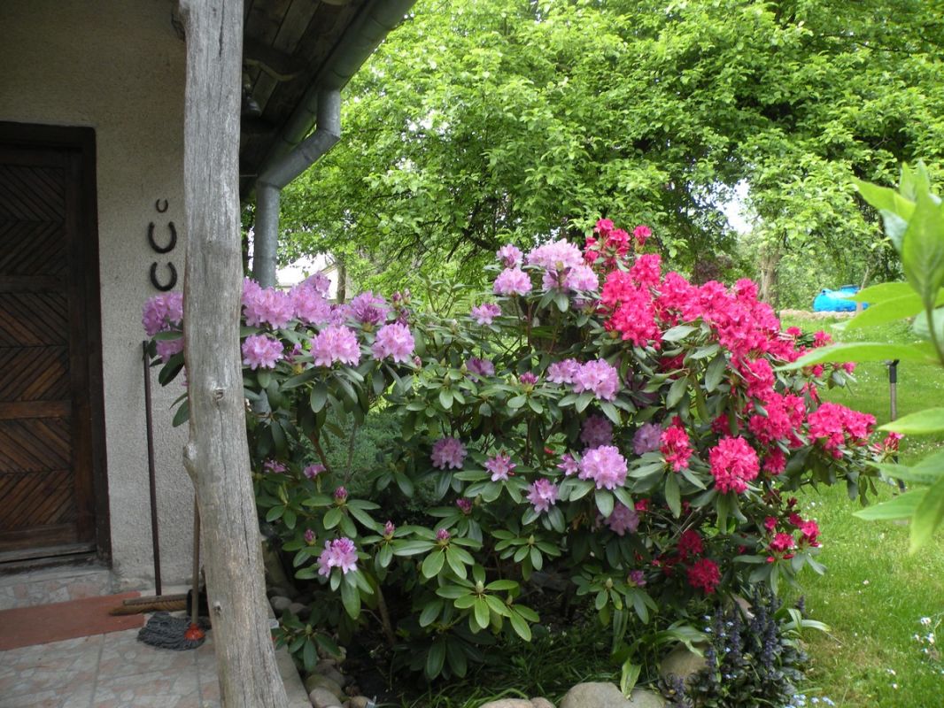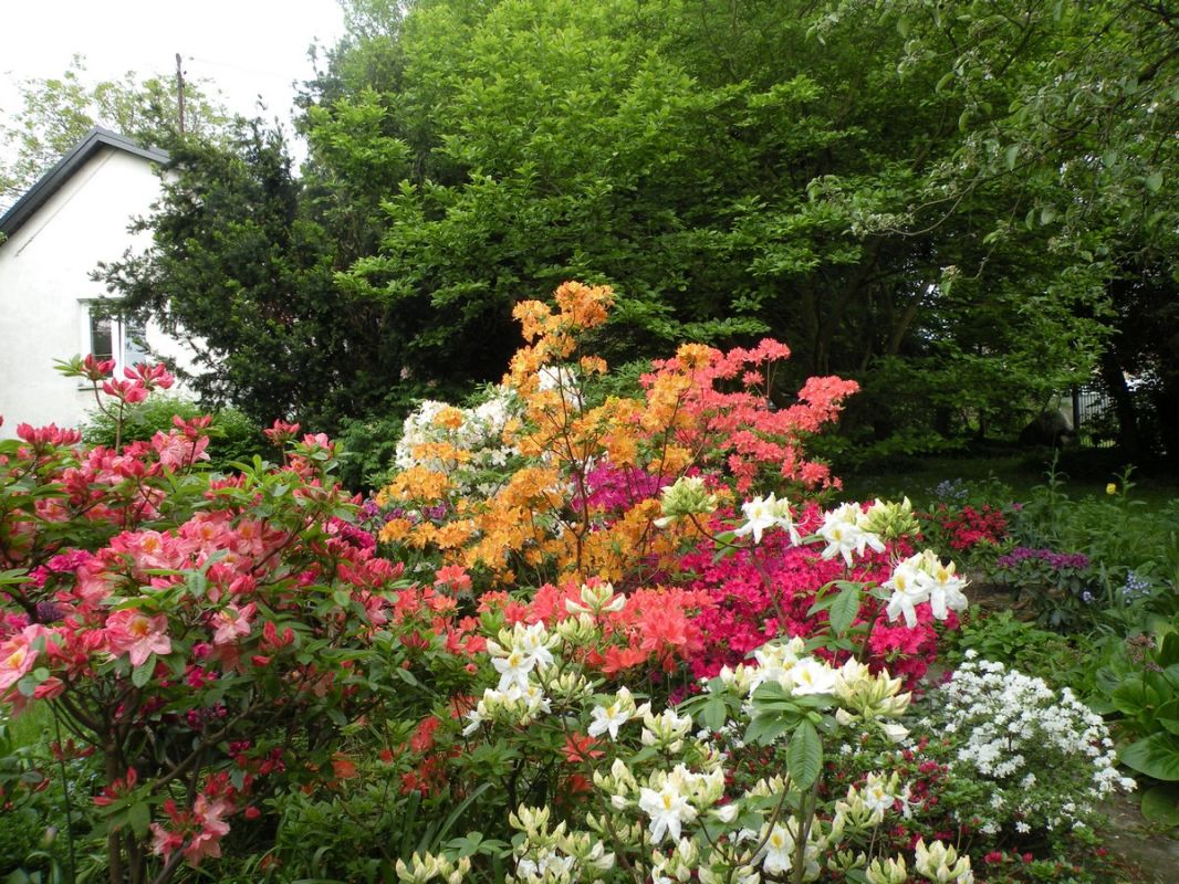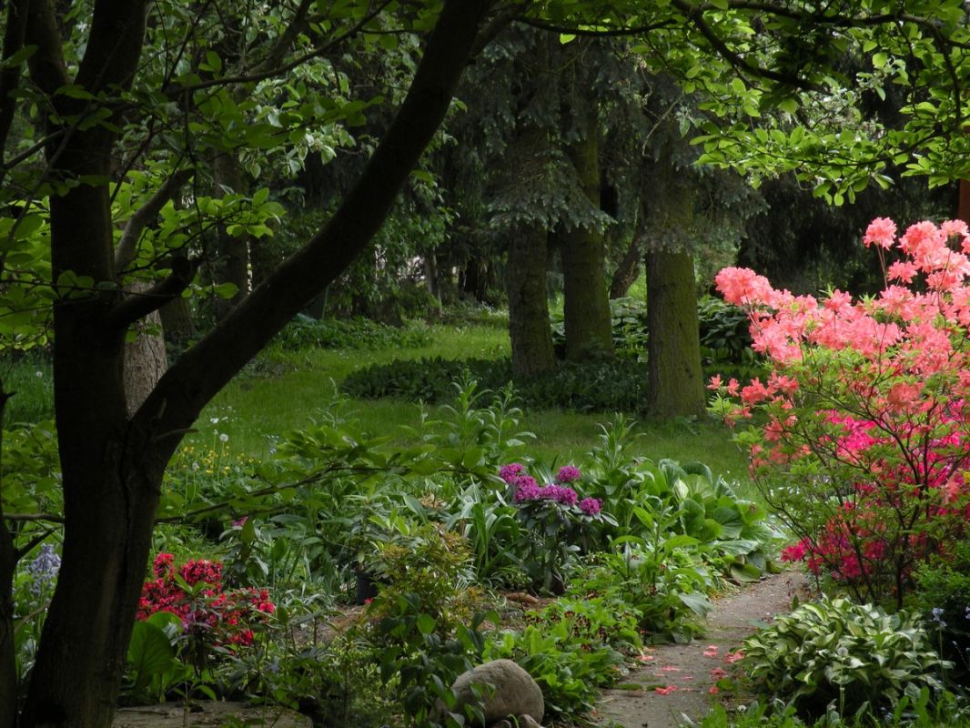 Krystyna Zacharzewska zakochała się w ogrodach w stylu angielskim, z ich różnorodnością, „dzikością” i niepowtarzalnym klimatem. Taki jest jej ogród w Drozdowie. Możemy tu zobaczyć tulipanowca, miłorząb, pigwę, perukowca, tamaryszek, ostróżki, pęcherzycę, migdałek, glicynię, parzydło, paprocie, piwonie, hortensje, jodły. Widzimy typowo polskie brzozy, sosnę oraz wierzbę płaczącą. Są grusze i jabłonie, wśród nich między innymi papierówka śmietankowa. Szczególną uwagę zwraca na siebie piękna magnolia, zaś kolorystykę ogrodu tonują rozmaite krzewuszki. Są także trzy rodzaje derenia, w tym jeden jadalny, który można wykorzystywać chociażby do nalewek. Spotykamy dęby i modrzewie, których sadzonki pochodzą z Puszczy Kampinoskiej. Znajduje się tu roślina zwana „krzewem Mojżesza” (Dyptam), wydająca charakterystyczny przyjemny aromat. Wystarczy dotknąć jej łodygi lub kwiatów. Inną ciekawostką jest tzw. „drzewo krzyża”. Rośnie na terenie Ziemi Świętej. Z jego wiotkich gałęzi z zadziwiająco długimi i ostrymi kolcami podobno upleciono koronę cierniową dla Chrystusa. W ogrodzie nie brakuje także ziół: mięty, lubczyku czy melisy. Chlubą właścicielki są rododendrony – różne rodzaje przywiezione z Anglii. Sekretem właściwej uprawy tych roślin jest pieczołowite przygotowanie odpowiedniego podłoża do nasadzenia. Bez tego rośliny się nie przyjmą. W rododendronach pani Krystyna zakochała się od pierwszego wejrzenia. Pięknie kwitną, przykuwają uwagę kolorami oraz wielkością (są duże jak niektóre krzewy).