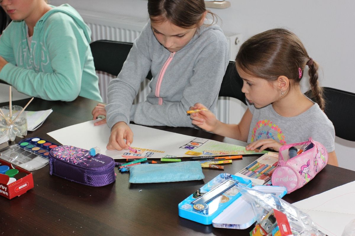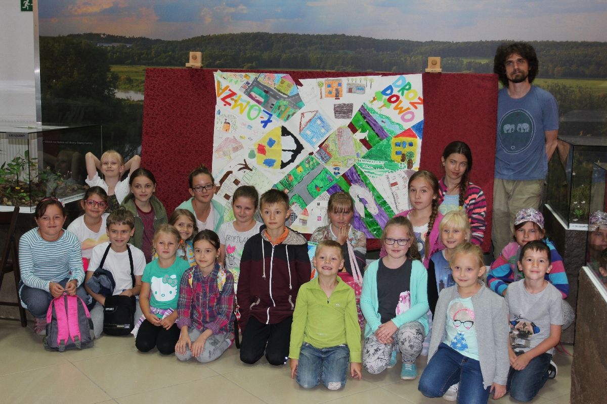 Wspólnie rysowano krajobrazy, budynki, siedzibę Muzeum, czyli zabytkowy dwór Lutosławskich, a także własne domy oraz widoki kojarzone przez dzieci z ich najbliższą okolicą i miejscem zamieszkania. Wszystko to złożyło się w jedną całość i tak powstała Mapa Drozdowskiego Świata – efekt finalny warsztatów.