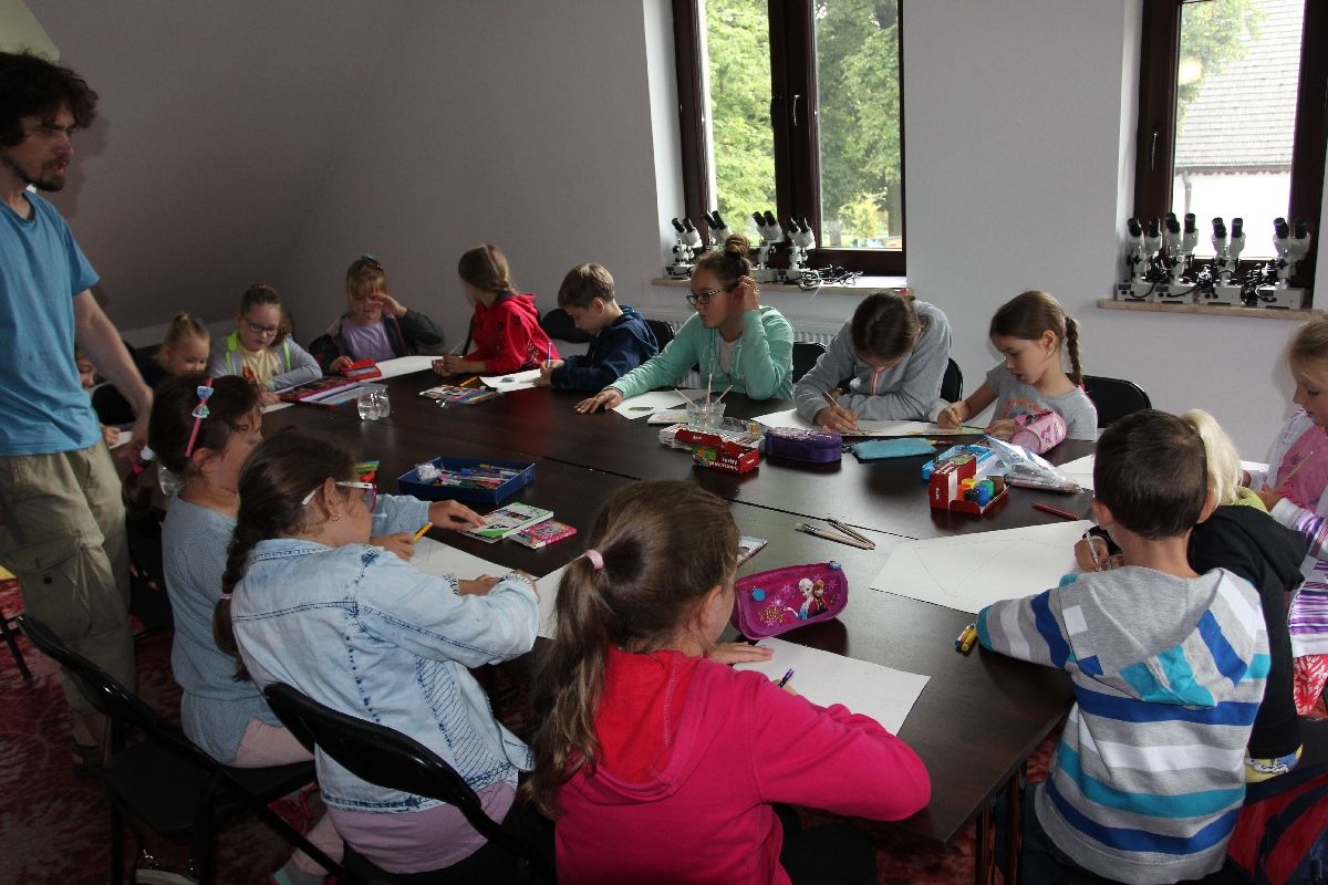 Przez trzy sierpniowe dni (9-11 sierpnia 2016 roku) w drozdowskim Muzeum Przyrody odbywały się warsztaty plastyczne zatytułowane „Jak narysować świat?” prowadzone przez Jana Rusińskiego z Pracowni Ilustracji Akademii Sztuk Pięknych w Warszawie. Adresowane były do dzieci szkół podstawowych z Drozdowa, Łomży i okolic. Każdego dnia na uczestników czekały nowe zadania. Wybrano się m. in. na spacer historyczny po Drozdowie, podczas którego szkicowano tutejsze zabytki. Poznawano także walory okolicznej przyrody związanej z rzeką Narew. Innym zadaniem był narysowanie wybranej ryby spośród tych jakie możemy zobaczyć na muzealnej wystawie akwarystycznej „Podwodny Świat Pięciu Kontynentów”. W przerwach można było skorzystać także z czasowej biblioteczki, na którą składały się rozmaite ilustrowane książki oraz albumy.