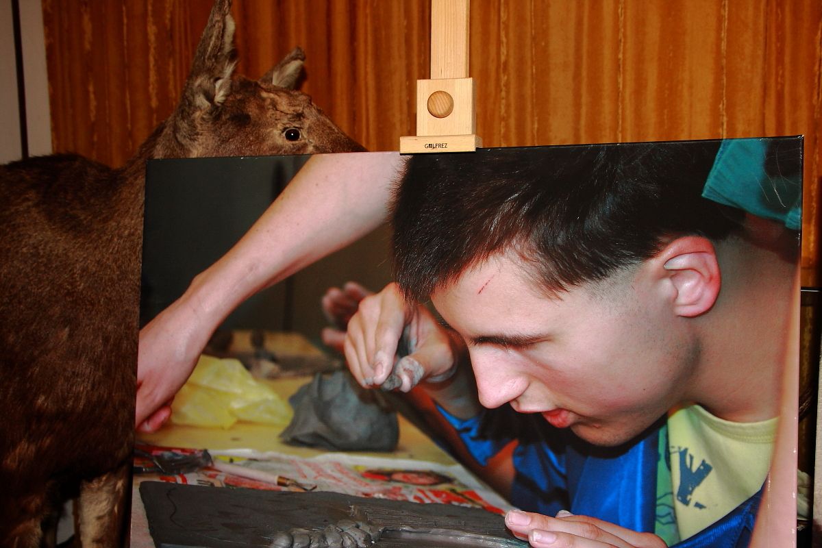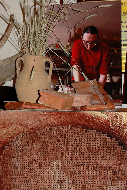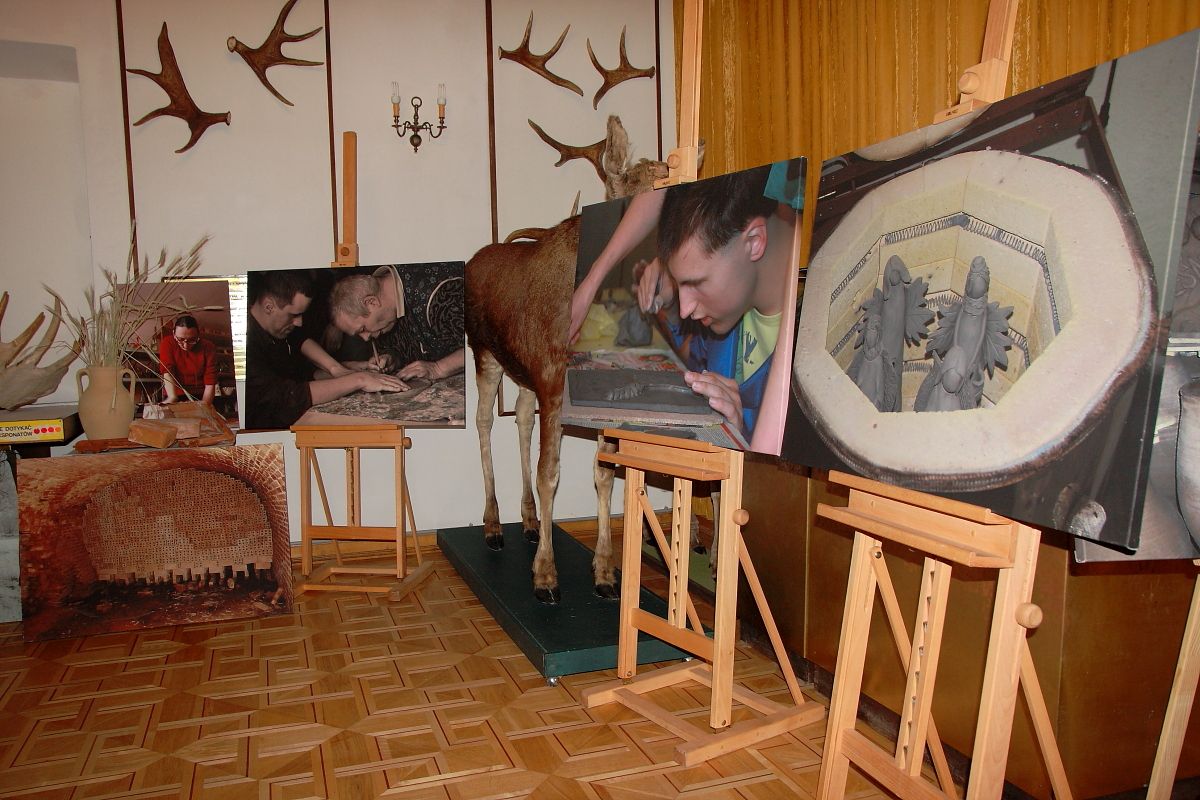 Uzupełnieniem ekspozycji są wielkoformatowe fotografie przedstawiające środowisko naturalne występowania gliny, zabytkową architekturę glinianą, wnętrza pieca tradycyjnej cegielni, garncarskiego oraz współczesnego pieca elektrycznego. Fotografie przedstawiają również osoby niepełnosprawne podczas pracy w glinie.