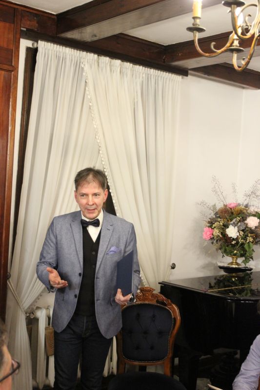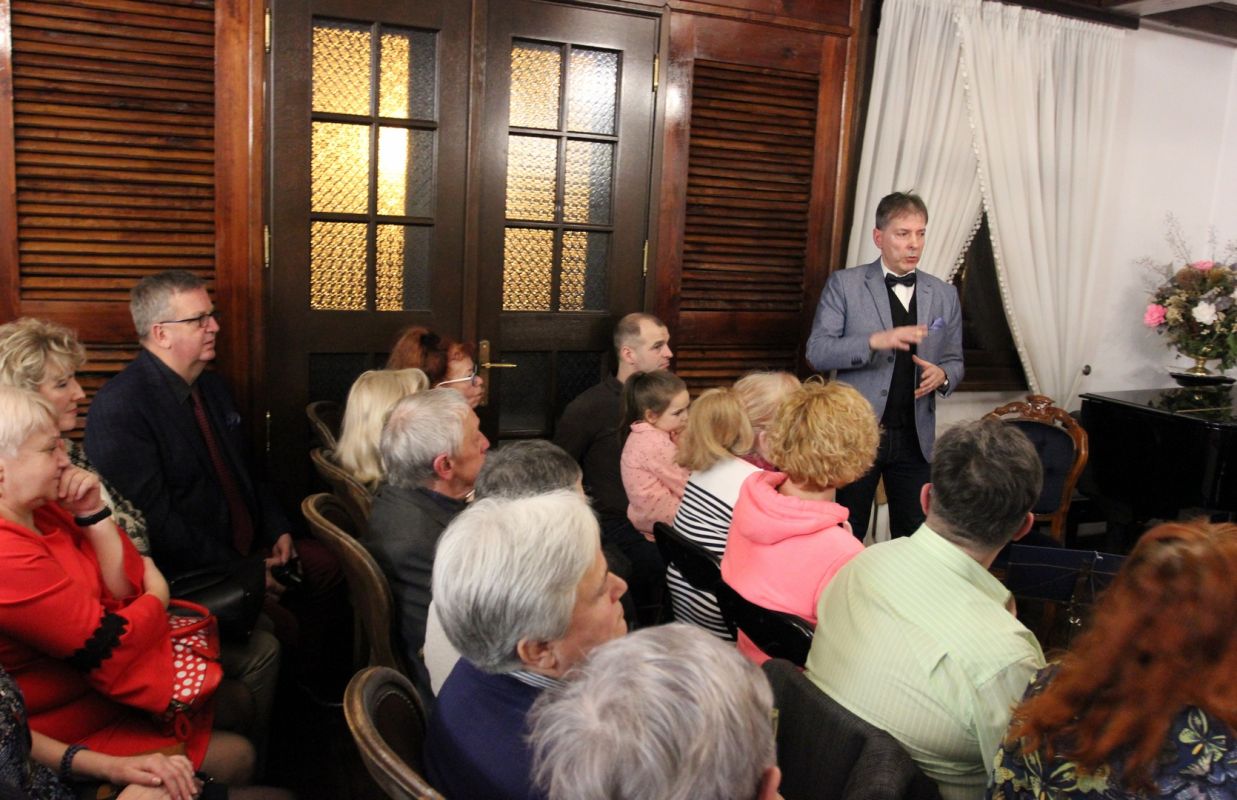 Wieczór barwnie prowadził współtworzący koncert muzyk, Wojciech Popielarz - nauczyciel gitary w Zespole Państwowych Szkół Muzycznych w Ełku, prezes Ełckiego Stowarzyszenia Kulturalnego.