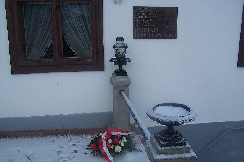 Tablica poświęcona pamięci Romana Dmowskiego w Muzeum Przyrody w DrozdowieKwiaty pod tablicą pamięci Romana Dmowskiego w DrozdowieW dniu dzisiejszym czyli 2 stycznia 2009r. mija 70 rocznica śmierci Romana Dmowskiego. Drozdowo na Ziemi Łomżyńskiej, a ściśle dwór Lutosławskich w Drozdowie jest miejscem, gdzie Roman Dmowski spędził ostatnie dni życia. Tu zmarł i tutaj rozpoczęły się uroczystości pogrzebowe zakończone 7 stycznia na Cmentarzu Bródnowskim w Warszawie.