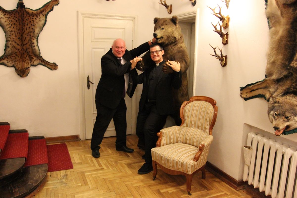W piątek 15 czerwca br. Muzeum Przyrody w Drozdowie odwiedziła delegacja z partnerskiego powiatu Dingolfing-Landau (partnerski samorząd Powiatu Łomżyńskiego) wraz ze Starostą Heinrichem Trappem oraz przedstawicielami Gminy Marklkoffen – oficjalnego partnera gminy Śniadowo. Delegacji towarzyszyli gospodarze i współorganizatorzy wizyty: Wicestarosta Łomżyński Lech Marek Szabłowski, członek Zarządu Województwa Podlaskiego Jacek Piorunek, dyrektor drozdowskiej placówki Anna Archacka oraz w charakterze tłumacza ksiądz prałat Sławomir Śledziewski – sekretarz kardynała Gerharda Ludwiga Müllera.