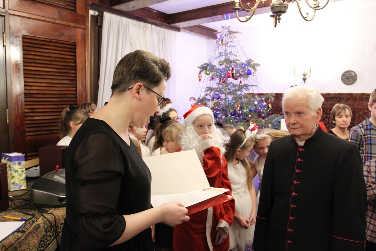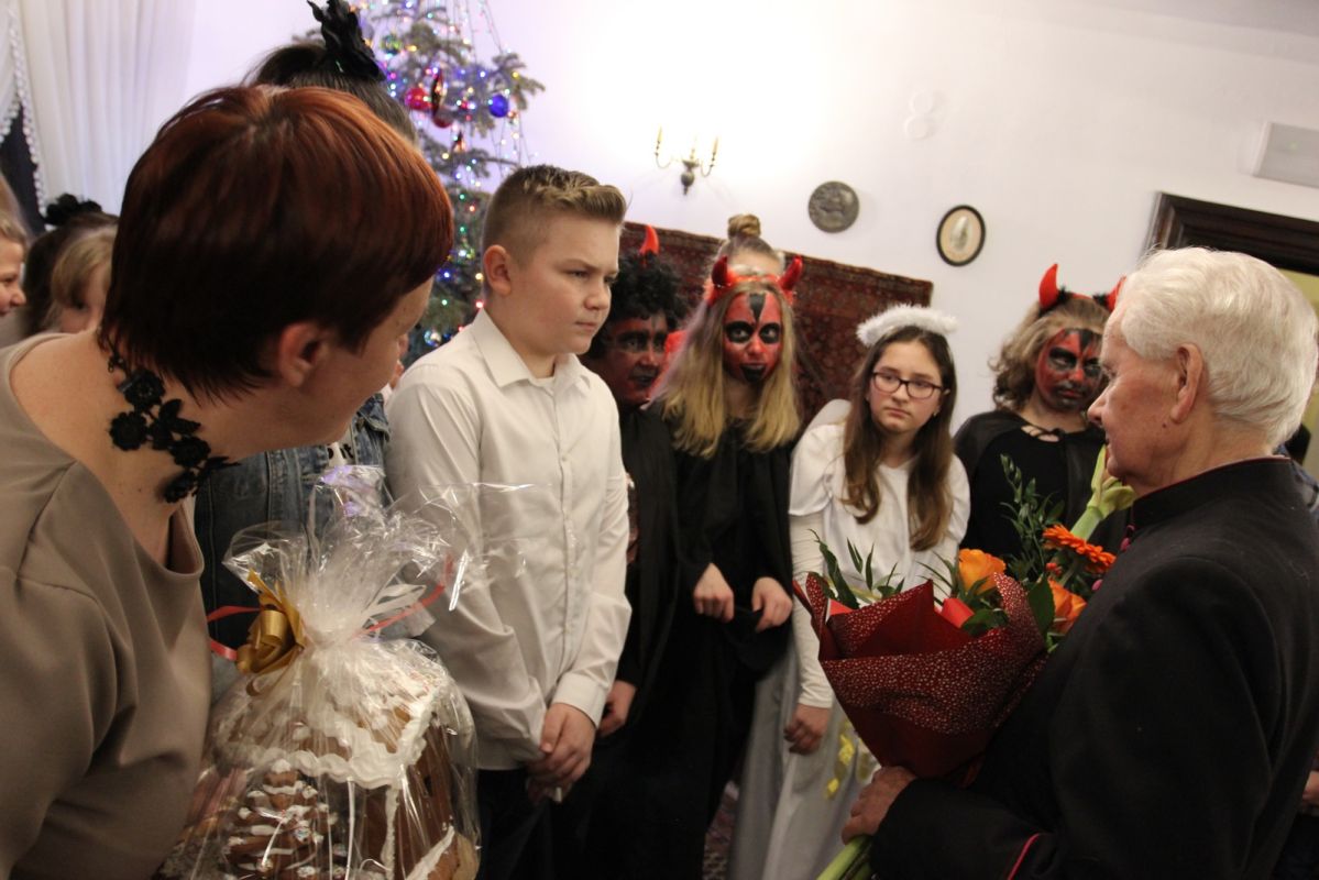 Jasełka w reżyserii pani Ireny Bazydło. Chór „Szkolne Słowiki” pod opieką artystyczną Beaty Sejnowskiej-Runo, dyrektora Szkoły. Kolędy odwieczne i te współczesne, śpiewane solo, z chórem, z publicznością. Ciekawe opowieści o życiu ks. Jubilata, „Gawęda o Małym Jezusicku” sybiraka Mariana Paliwody. Słodkości, jubileuszowy smaczny tort. A nade wszystko moc życzeń dla ks. Jana, życzliwość i dobre słowo wśród gości i wykonawców stworzyły międzypokoleniową wspólnotę: od najmłodszych przedszkolaków, poprzez dzieci, młodzież i rodziców, aż po szacowne babcie i szacownych dziadków.