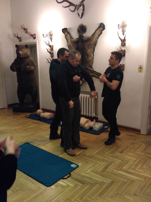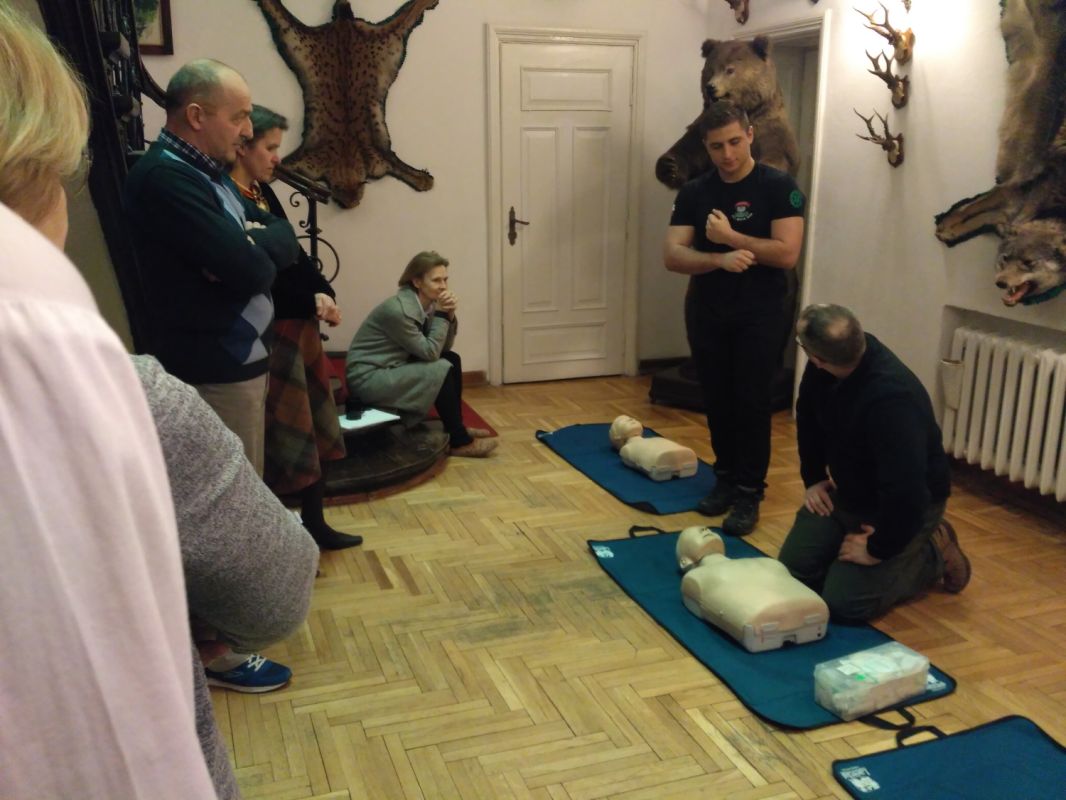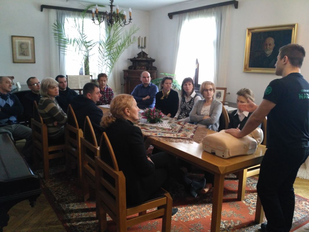 IMG 20190312 114307W dn. 12.03.2019 w Muzeum Przyrody w Drozdowie odbyło się szkolenie w zakresie udzielania pierwszej pomocy przedmedycznej, które przeprowadził Pan Sebastian Górski – ratownik medyczny z Grupy Ratowniczej Stowarzyszenia Pomocy Rodzinie "Nadzieja" z Łomży. Zostali przeszkoleni wszyscy pracownicy instytucji. Zagadnienia poruszone na szkoleniu to: resyscytacja, zakładanie opatrunków, postępowanie w przypadku omdleń, zadławień, wstrząsów. Pracownicy mieli okazję zdobyć nie tylko wiedzę teoretyczną lecz także praktycznie sprawdzić swoje umiejętności i możliwości na specjalistycznych fantomach. Dziękujemy za przekazanie rzetelnej wiedzy i podzielenie się własnym doświadczeniem.