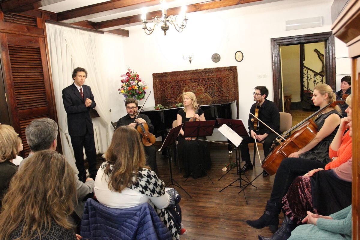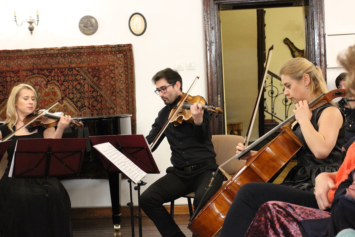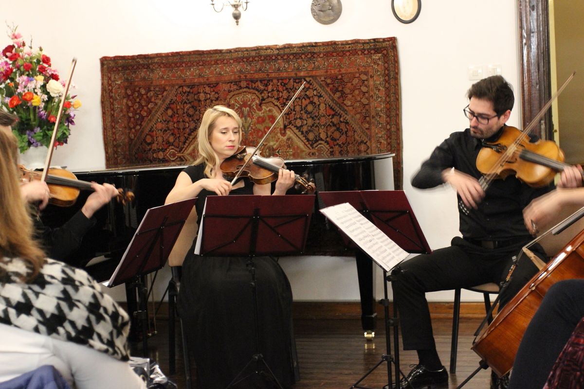 Wykonawcami „Muzycznego wieczoru u Lutosławskich” byli 21 marca wirtuozi nagrodzonej niedawno „Fryderykiem” Filharmonii Kameralnej im. Witolda Lutosławskiego w Łomży. Wystąpili skrzypkowie: Agnieszka Sobolewska i Cezary Gójski – koncertmistrz Filharmonii; altowiolista Adrian Stanciu - zdobywca wielu nagród, absolwent Uniwersytetu Muzycznego „George Enescu” w Iaşi i Uniwersytetu Muzycznego MDW w Wiedniu oraz wiolonczelistka Monika Cekała – łomżynianka, od niedawna wiolonczelistka orkiestry.