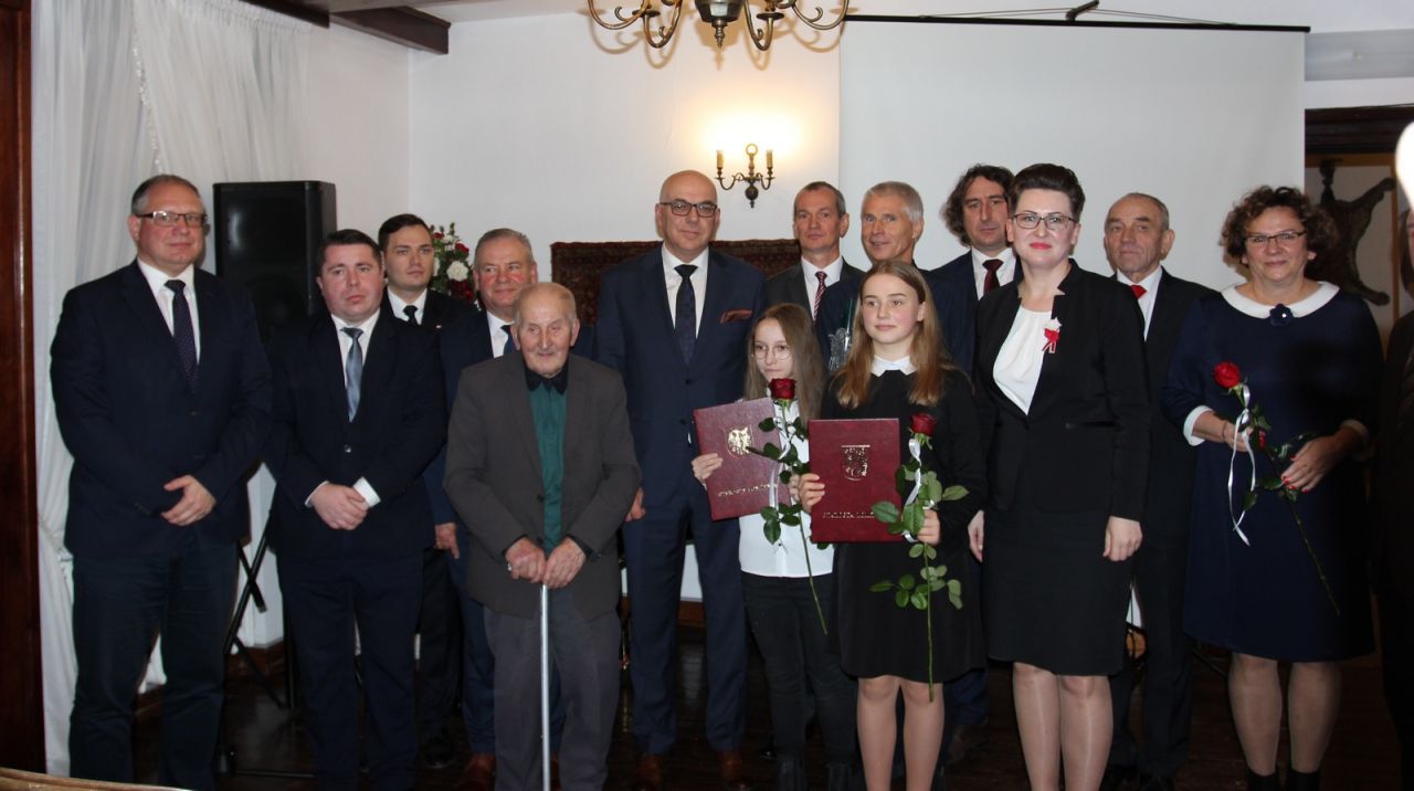 Kolejnym wydarzeniem było wręczenie Nagród Starosty Łomżyńskiego, a więc docenienie w tym ważnym dniu osób angażujących się w pracę na rzecz dobra wspólnego. W tym roku nagrodę otrzymali: Zdzisław Dobrowolski - nauczyciel W-F, wiceprzewodniczący Powiatowego Szkolnego Związku Sportowego (nagrodę w jego imieniu odebrała żona), Tadeusz Grabowski – 98-letni artysta ludowy, poeta, muzyk i lutnik pochodzący z Wizny oraz Mariusz Niziński – promotor zdrowego stylu życia, założyciel Stowarzyszenia Biegamy dla Zdrowia w Łomży organizującego imprezy biegowe.