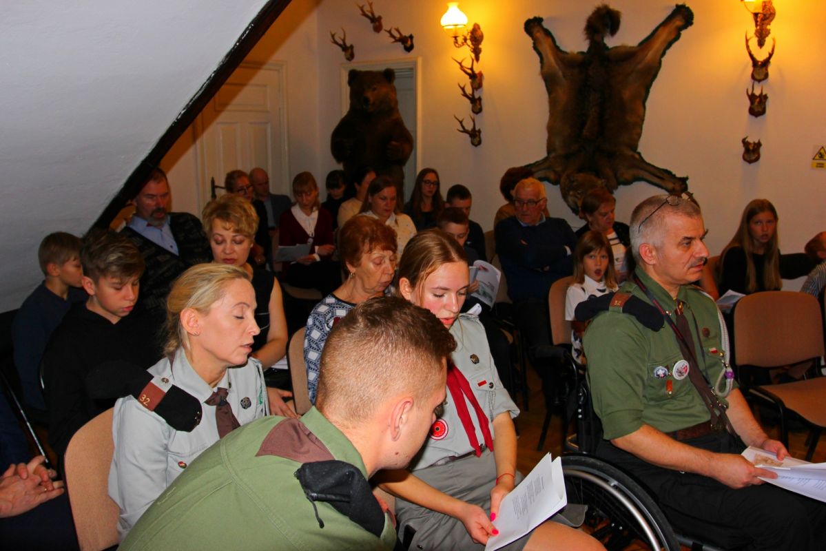 Wieczorem w salonie Dworu Lutosławskich odbył się 20. jubileuszowy Wieczór Pieśni Patriotycznej organizowany przez Katarzynę i Krzysztofa Lipskich wraz z synami Pawłem, Markiem i Łukaszem. Tegoroczna edycja była okazją do przypomnienia pierwszych edycji wydarzenia, które stało się jednym z najważniejszych punktów obchodów Święta Niepodległości w regionie łomżyńskim. Wieczory początkowo organizowane w prywatnym domu państwa Lipskich z czasem na stałe zawitały do drozdowskiego Muzeum. Zawsze ściągają licznych uczestników i tworzą niepowtarzalną atmosferę międzypokoleniowych spotkań, wspólnych śpiewów oraz refleksji historycznej na wybrane, co roku inne, tematy historyczne. W tym roku Katarzyna Lipska przedstawiła losy wybitnych polskich rodów i ich zasługi dla sprawy odzyskania niepodległości. Jednym z nich był drozdowski ród Lutosławskich.