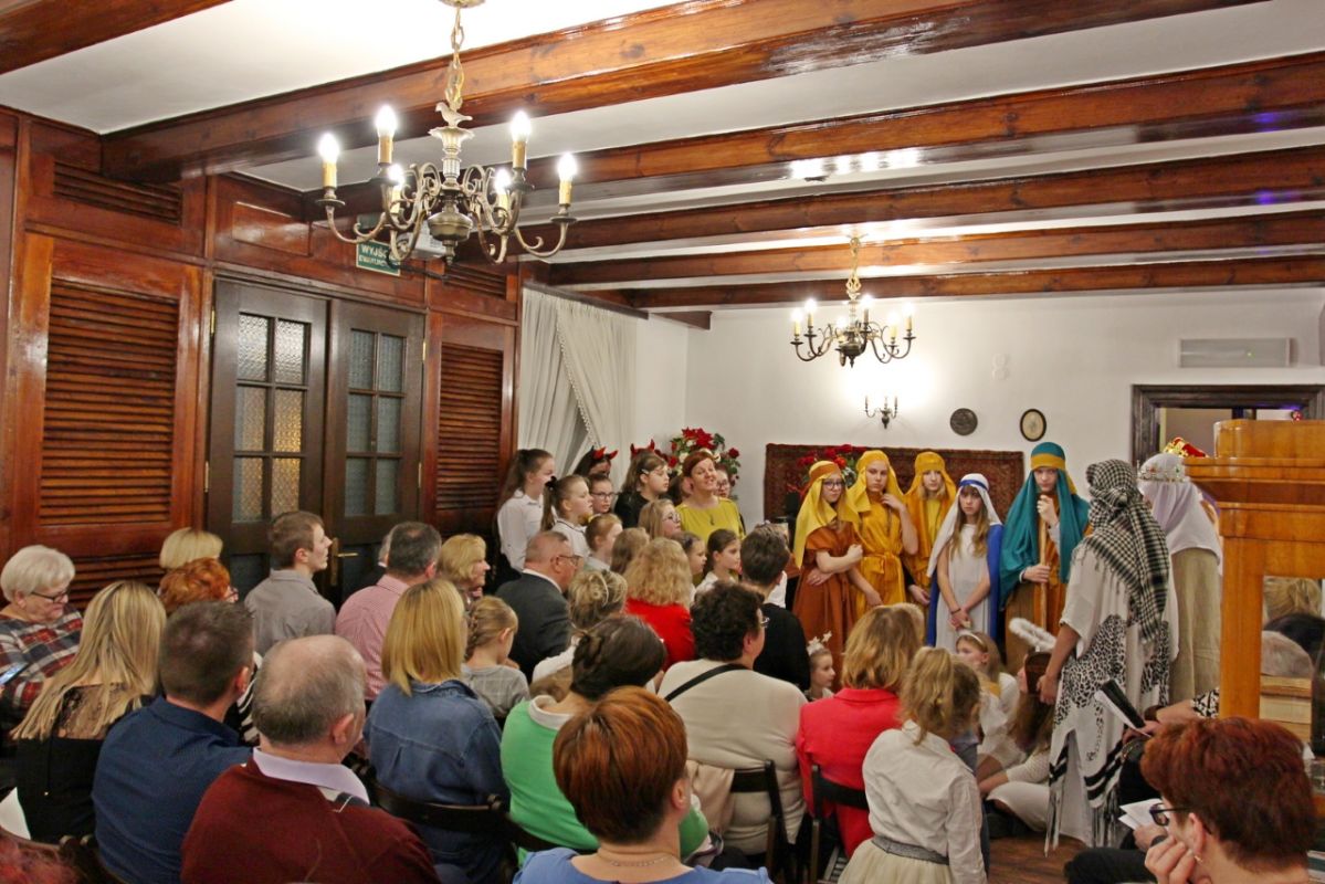 Podczas wieczoru zaprezentowano program złożony z kolęd, pastorałek, recytacji oraz jasełek – a te były podzielone na dwie odsłony. W pierwszej części, reżyserowanej przez Ewę Szmagulińską i Kingę Góralczyk, wystąpili przedszkolacy. Drugą w reżyserii Ireny Brzydło wykonali uczniowie klas starszych.