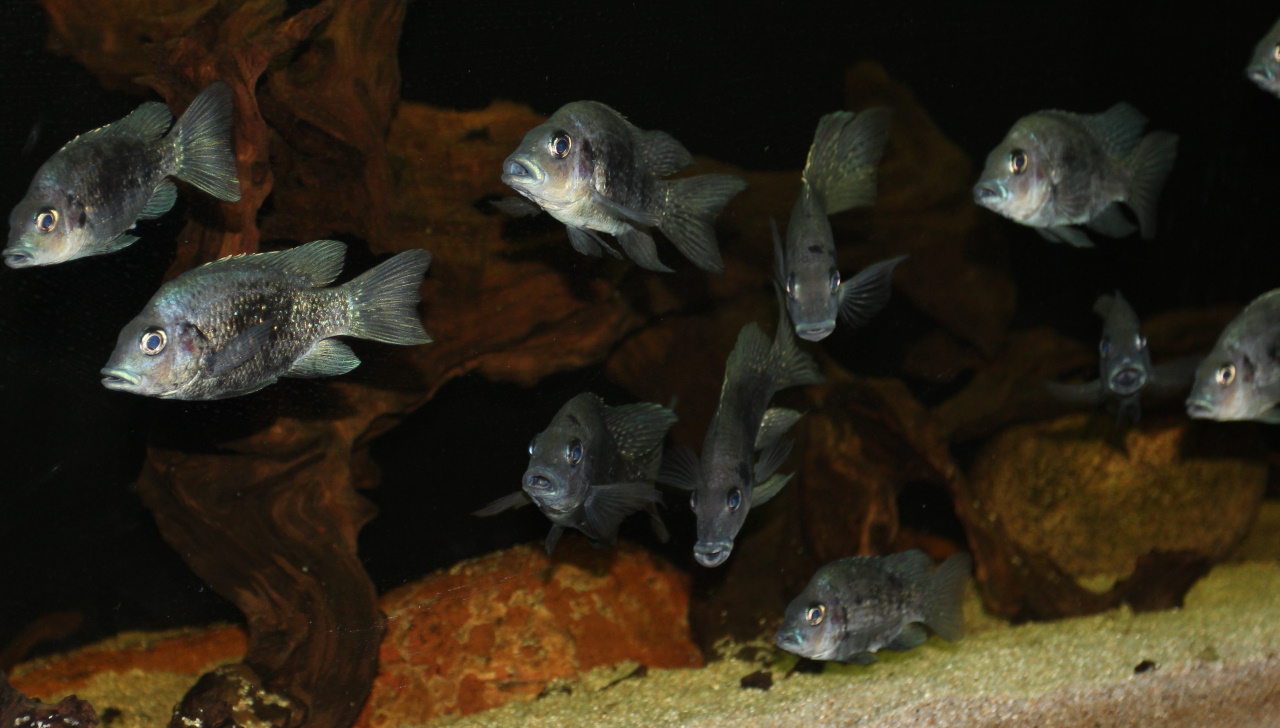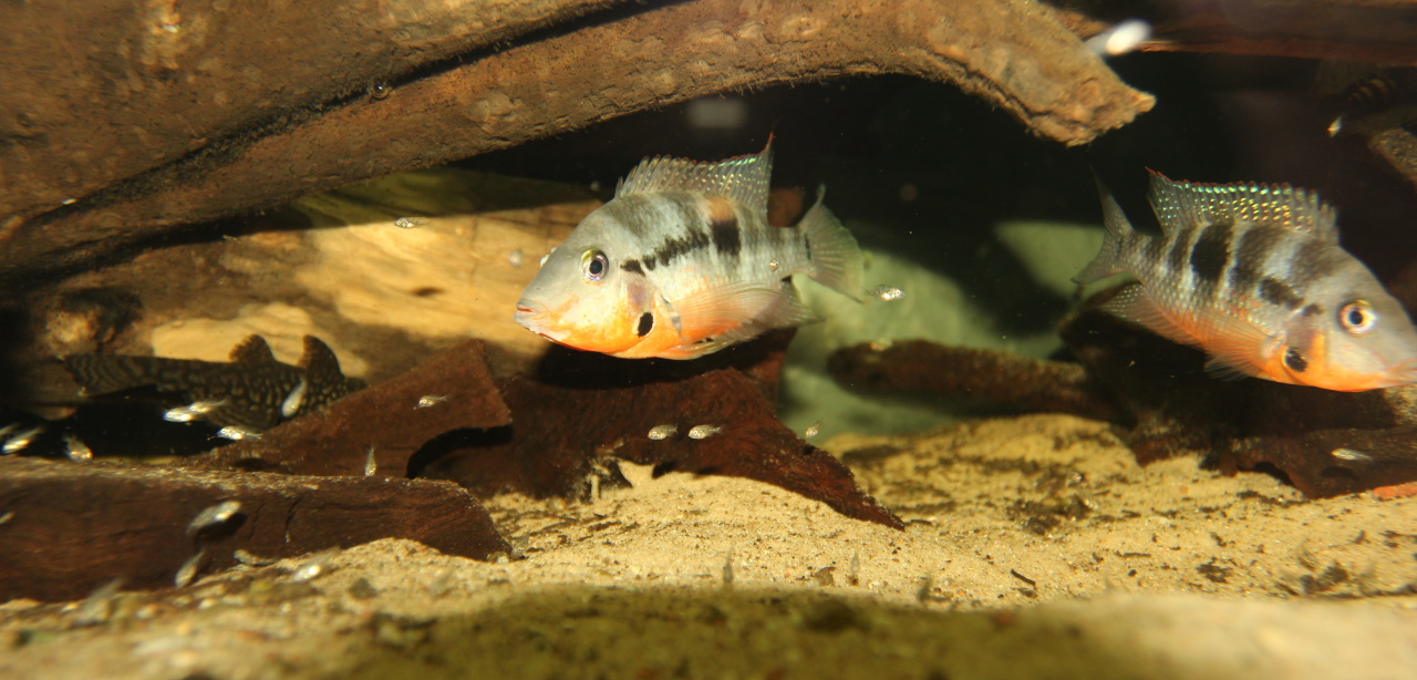 W jednym ze zbiorników rozmnożyły się Pielęgnice Meeka Thorichthys meeki. Gatunek ten charakteryzuje się tym, że obdarza swoje potomstwo bardzo troskliwą opieką. W akwarium bez trudu można było zauważyć w jaki sposób para rodzicielska chroni swój miot przed innymi rybami stanowiącymi potencjalne zagrożenie.