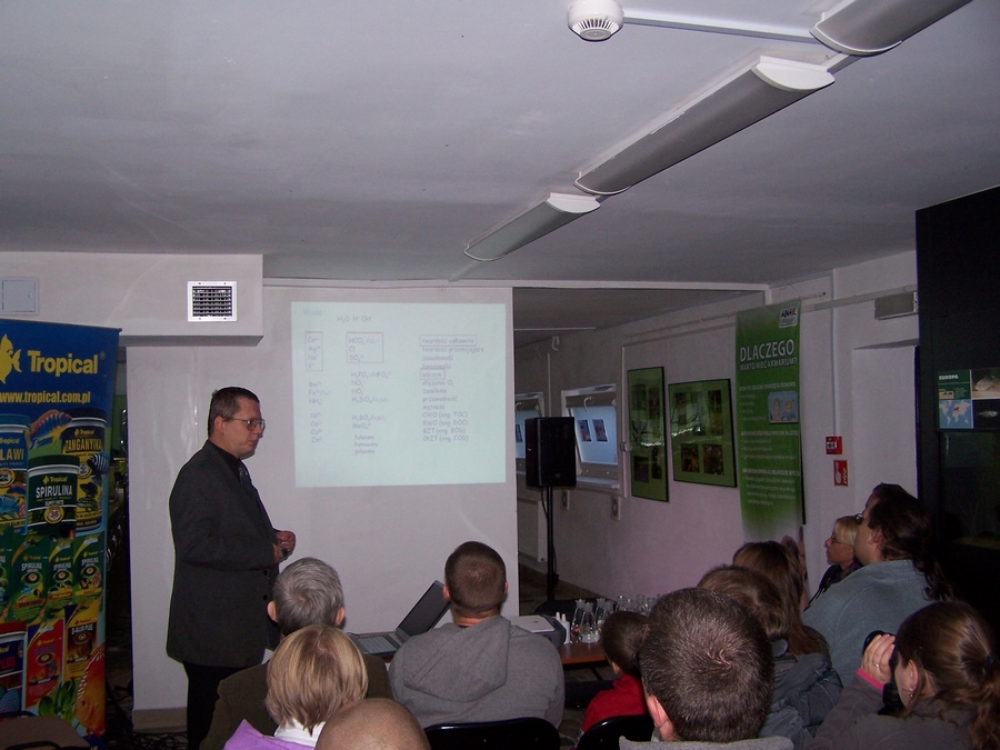 W sobotę 15 października miały miejsce prelekcje o tematyce akwarystycznej. Pierwszy wykład, pt. „Pielęgnice jeziora Wiktoria”, wygłosił Roman Pawlak z UMK w Toruniu, który jest opiekunem merytorycznym wystawy „Podwodny Świat Pięciu Kontynentów”.