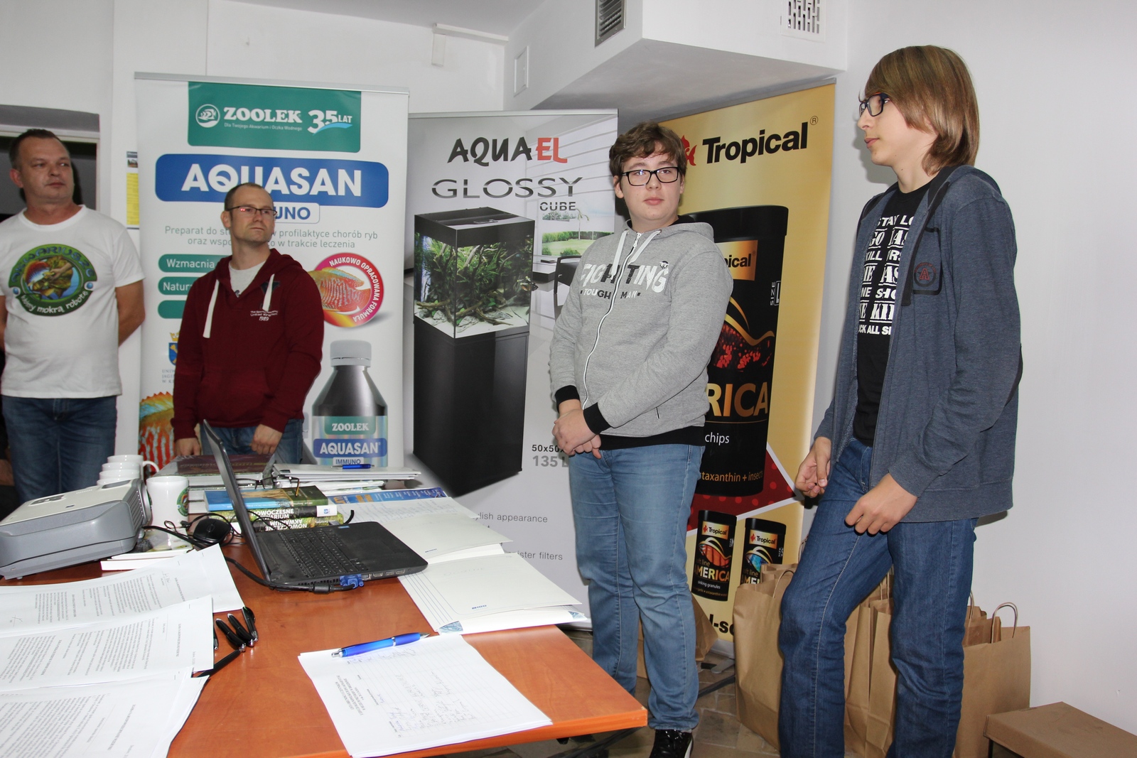 W godzinach popołudniowych odbył się konkurs wiedzy akwarystycznej. Nagrody konkursowe ufundowały firmy z branży zoologicznej. Uczestnicy konkursu hojnie obdarowani zostali urządzeniami i preparatami akwarystycznymi tj. filtry, grzałki, napowietrzacze, pokarmy, nawozy, witaminy, testy.