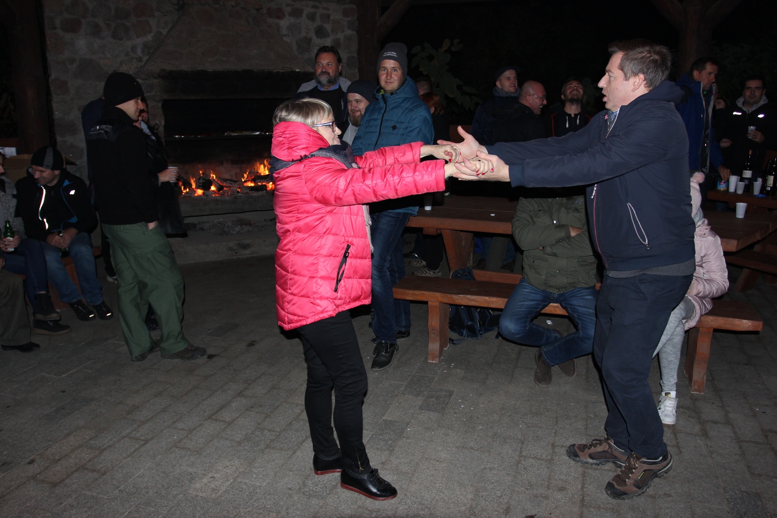 Wieczorem w parku muzealnym odbyło się spotkanie integracyjne przy ognisku. Jednym z jego elementów były warsztaty muzyczne przeprowadzone przez kapelę ludową „Miód na Serce”. W czasie zajęć pod fachowym okiem muzyków goście mogli tańczyć, śpiewać, czy uczyć się gry na ludowych instrumentach muzycznych.