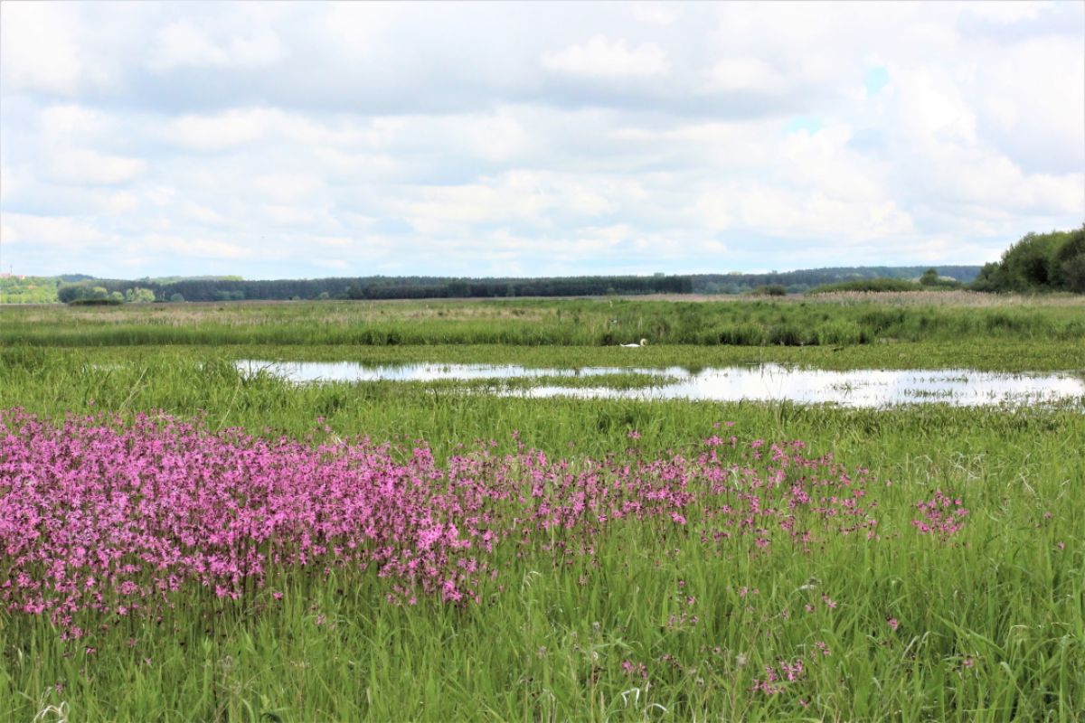 Już w XIX wieku duże i średnie rzeki Europy były uregulowane to znaczy pogłębione i o wyprostowanym biegu. Często też skanalizowane o utwardzonych brzegach. Ułatwia to żeglowanie ale tak bardzo osusza dolinę i tereny przyległe oraz niszczy nisze ekologiczne różnych gatunków, że nie sposób wręcz oddać tego słowami inaczej niż pożoga. Polska jest niemal na końcu w Europie jeśli weźmiemy pod uwagę zasoby wód słodkich, dlatego cieszmy się naturalną rzeką Narew i jej doliną. Wiosenne półnaturalne łąki przed sianokosami to jak misterny dywan rozmaitości zieleni traw, turzyc, krzewów wierzbowych i lasów na obrzeżach doliny przetkane żółtymi jaskrami oraz różową i fioletową Firletką poszarpaną. Zachwyt jaki ogarnia widza pozostanie w nas na zawsze. Szanujmy też nietykalność doliny. Dolina należy do rzeki. Raz na 50 czy 100 lat cała dolina zostanie wypełniona wodą. Taki jest cykl hydrologiczny naturalnej rzeki. Pamiętajmy aby nie wkraczać z zabudową na tereny zalewowe. Daje to niepotrzebną dewastację i wcześniej czy później ogromne koszta finansowe i środowiskowe. Zdjęcia wykonane 4.06.2020 roku w trakcie badań florystycznych niech przybliżą choć trochę piękno wiosennych, nadnarwiańskich łąk.