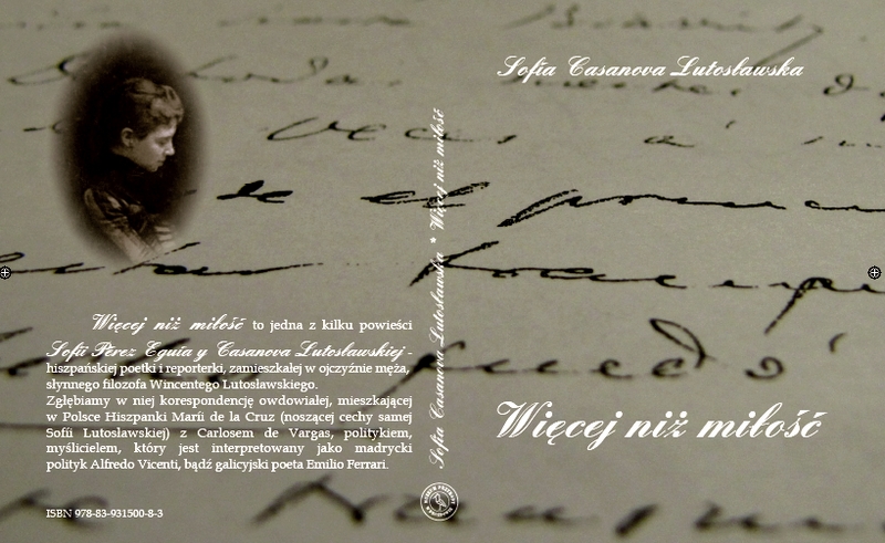 Wydana przez Muzeum Przyrody w Drozdowie książka "Więcej niż miłość" to powieść epistolarna, w całości jest wymianą listów. Wznowiona w Polsce po ponad 100 latach od ostatniego wydania(!). Jest to rzecz o uczuciach, głębinach ludzkiego ducha, ale nie tylko... Znajdujemy na kartach tej niespotykanej książki ducha epoki (początki XX wieku), a także subtelną analizę Polski i Polaków widzianych oczyma Hiszpanki. Powieść ma utajony wymiar biograficzny, osobisty. Spotykamy w niej zakamuflowane pojawiające się pod innymi nazwiskami postaci ważne dla polskiej kultury i polityki z którymi kontaktowała się Sofia Lutosławska. Zachwyca osobliwa erudycja, zastanawiają przewijające się analizy polskości, dziwić może (szczególnie czytelnika dzisiejszego) głęboko duchowy wymiar miłości dwojga osób (korespondencja ich jest głównym wątkiem powieści). Na końcu czytelnik sam odpowiedzieć musi na pytanie co oznacza owo tytułowe określenie "więcej niż miłość", czy istnieje coś większego niż miłość. Wydanie obecne zostało wzbogacone o obszerny wstęp i posłowie autorstwa iberystów: prof. Piotra Sawickiego oraz dr Marii Filipowicz-Rudek.