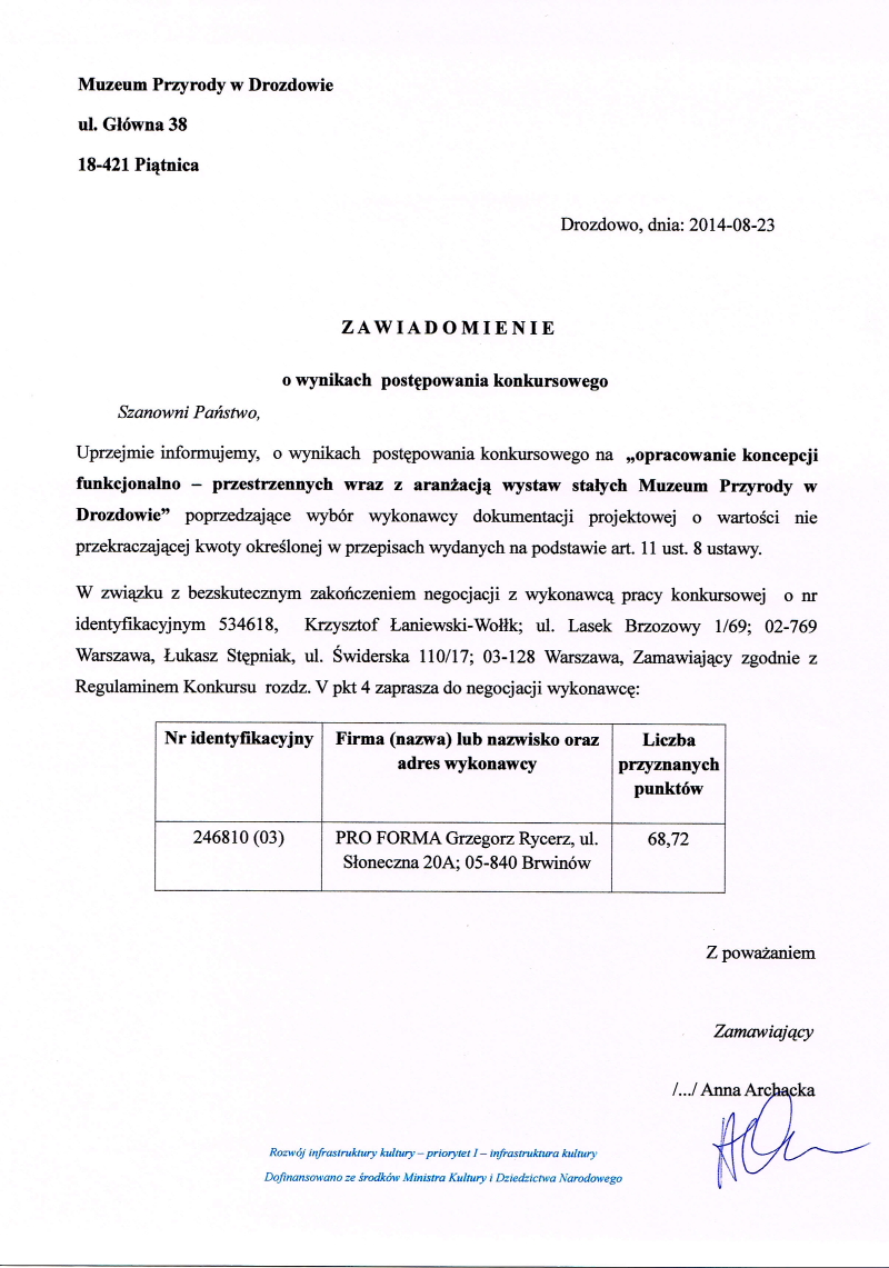 Dyrektor Muzeum Przyrody w Drozdowie, zwany dalej Zamawiającym,